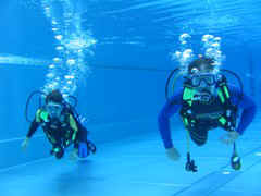 theorie-einheiten, schnorcheln und traingstauchgänge im schwimmbad