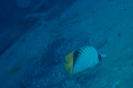 Info: Das typische Merkmal des Fähnchenfalterfisches ist das Filiament am Ende der Rückenflosse, das sonst kein Rotmeefalterfisch trägt. Er schwimmt einzeln oder parweise. Falterfische sind die Freude tauchender Fotografen. Die meisten von ihnen kommen ausschliesslich im Roten Meer vor. Die tagaktiven Schwimmer ernähren sich von Korallenpolypen oder frei treibendem Zooplankton. {Helmut Dibelius: Unterwasserführer Rotes Meer, Fische, S. 138, 144; ISBN 3-89594-021-6}