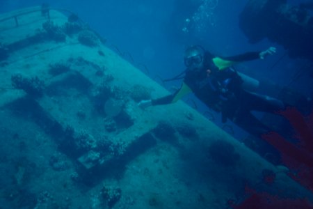 Info: Das letzte Schiff, dem Abu Nuhas zum Verhängnis wurde, war der griechische Frachter ”Giannis D”. Am 19. März 1983 lief er auf das Riff und sank innerhalb kurzer Zeit. Das etwa 80 Meter lange Schiff ist gut 10 Meter breit. Es liegt in 20 Meter Tiefe im spitzen Winkel zum Riff schräg auf dem Sandgrund. Der Kiel zeigt in Richtung Riffwand, die Aufbauten sind seewärts gerichtet. Die schräge Lage des Bugteils wirkt manchmal irritierend, und der Taucher muss sich bewusst machen, dass nicht er, sondern das Schiff schräg liegt. Besonders attraktiv sind die gut erhaltenen Aufbauten. Auf dem Schornstein der "Giannis D" prangt unübersehbar das "D" für Dumarc. Die ehemalige Ladung des Schiffes, wertvolle Teakholzbalken, liegen teilweise noch ver-streut herum. Die Ladung wurde aber zum größten Teil von den einheimischen Fischern gleich nach dem Unglück geborgen und nach Hurghada gebracht. Insbesondere auch deshalb, weil der Gouverneur von Hurghada ihnen einen Anteil am Holz versprochen hatte – Holz ist in dieser Region ein besonders wertvolles, weil seltenes Material. Die Balken wurden von Schiffswerften und Schreinern verarbeitet. {Matthias Bergbauer, Manuela Kirschner, Holger Göbel: Tauchreiseführer Rotes Meer, Ägyptische Festlandküste, S. 97f; ISBN 3-89594-009-7}
