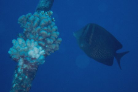 Info: Doktorfische kommen zu ihrem Nahmen wegen ihrer "Skalpelle", zum Teil mit Warnfarben ausgestatteter Dorne an der Wurzel der Schwanzflosse, die sie bei Gefahr zum Aufschlitzen des Gegeners benutzen. {siehe auch: Helmut Dibelius: Unterwasserführer Rotes Meer, Fische, S. 24ff; ISBN 3-89594-021-6}