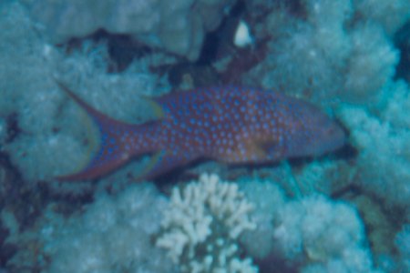 Info: Welcher Taucher liebt sie nicht, die Zackenbarsche, der Familie Serranidae? "Zackis", wie sie gerne populär genannt werden, beeindrucken durch ihren kompakten, wuchtigen Körper, den sie zu Jagd auf Fische und Krebstiere mit der überdimensionalen Schwanzflosse schlagartig antreiben können. Sonst sieht man die zumeist versteckt lebenden Raubfische eher langsam am Riff entlang gleiten. {Helmut Dibelius: Unterwasserführer Rotes Meer, Fische, S. 36; ISBN 3-89594-021-6}